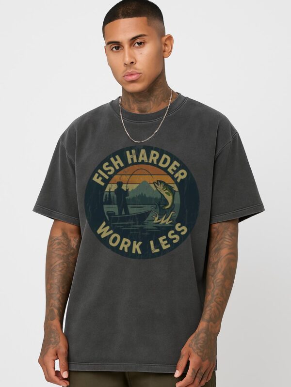 Fish Harder Work Less T-Shirt | Funny Fishing Gift for Anglers