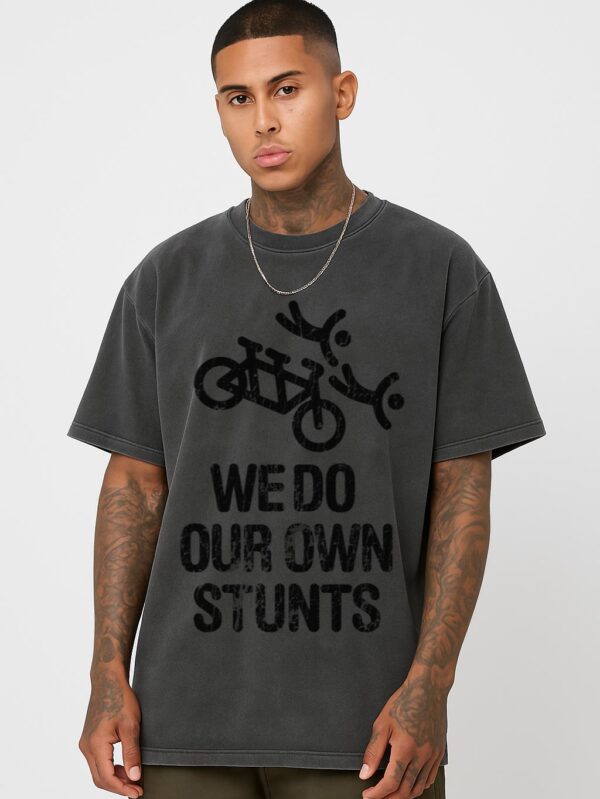 Funny 'Our Own Stunts' Tandem Cycling T-Shirt | Acid Wash