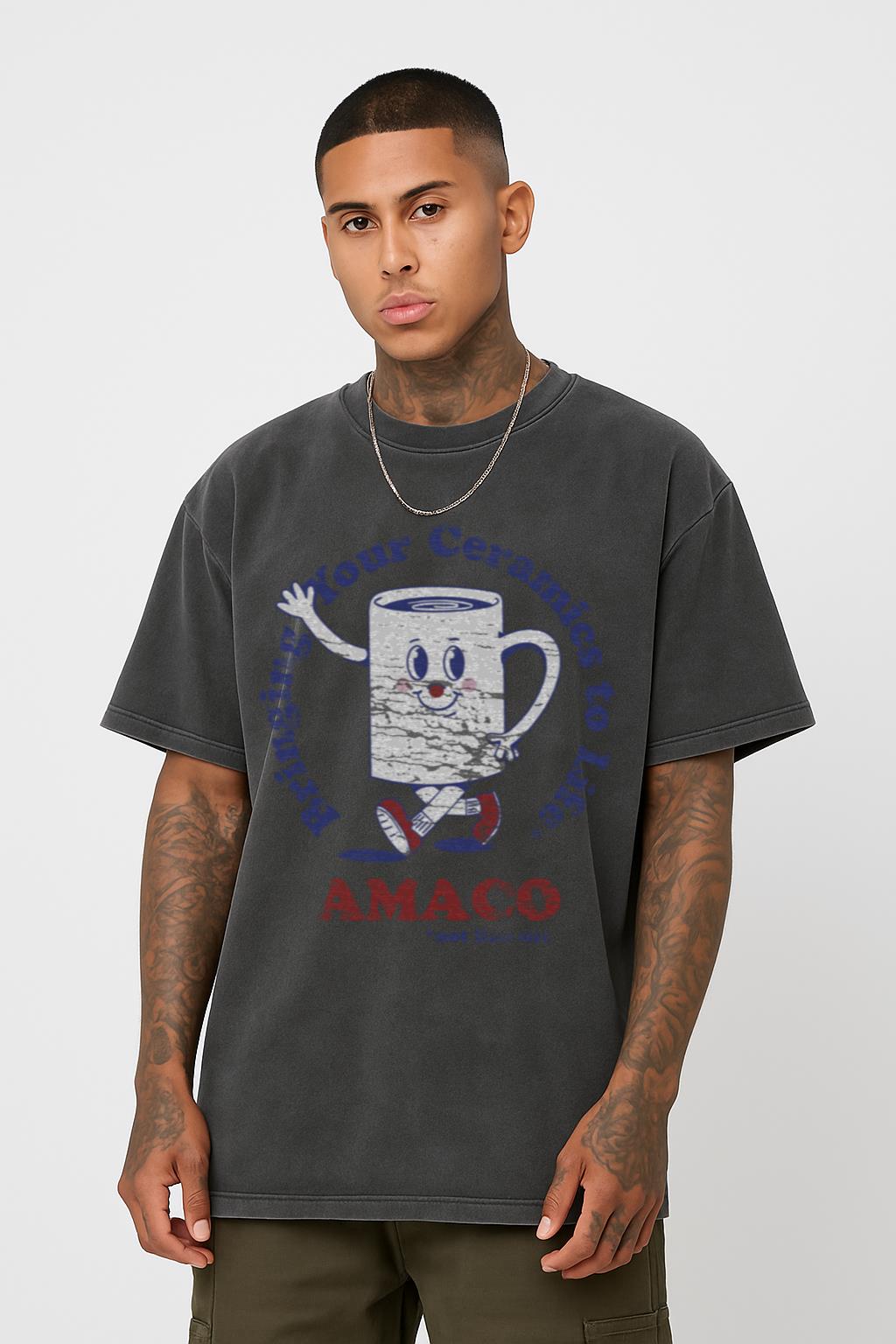 Embrace your passion for clay with this Amaco Mug Man T-Shirt, a unique design celebrating the art of pottery and ceramics. Inspired by the iconic American Art Clay Company, this tee is crafted from 100% cotton with a stylish Black Acidwash finish. It’s a comfortable, regular fit shirt, perfect for ceramicists, potters, and art enthusiasts who appreciate quality craftsmanship.