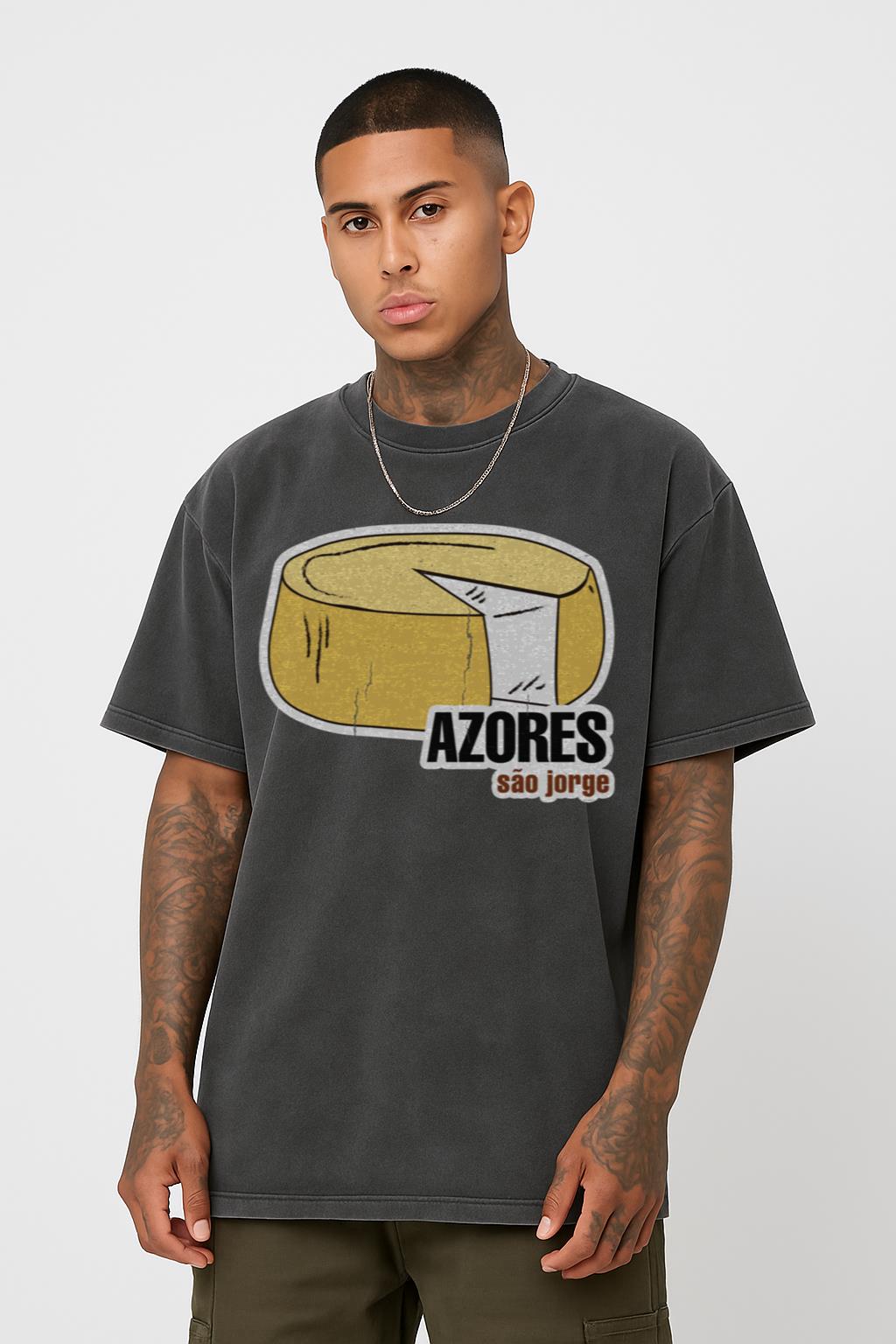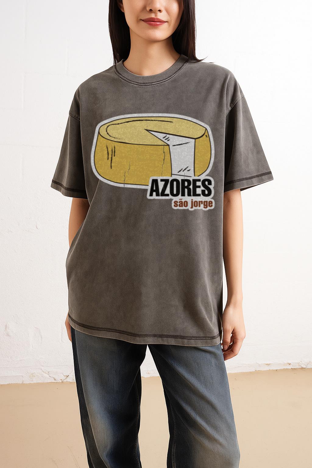 Celebrate the unique flavors of the Azores with this Azores Cheese T-Shirt, featuring a distinctive graphic inspired by Portuguese island cuisine. Crafted from 100% cotton with a trendy Black Acidwash finish, this regular fit tee offers both comfort and a stylish nod to the famous Sao Jorge cheese. It’s the ideal piece for foodies and travel enthusiasts alike.