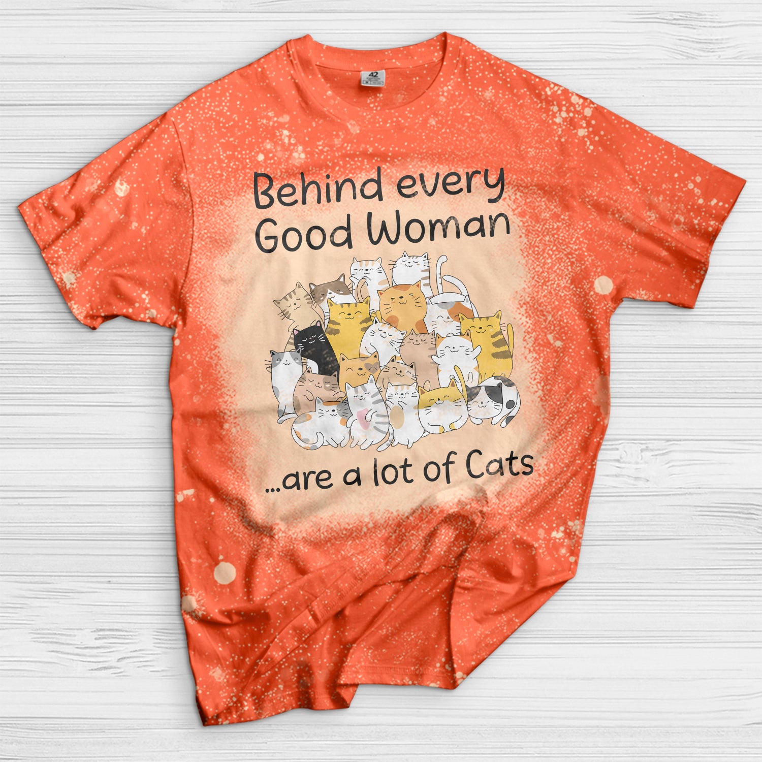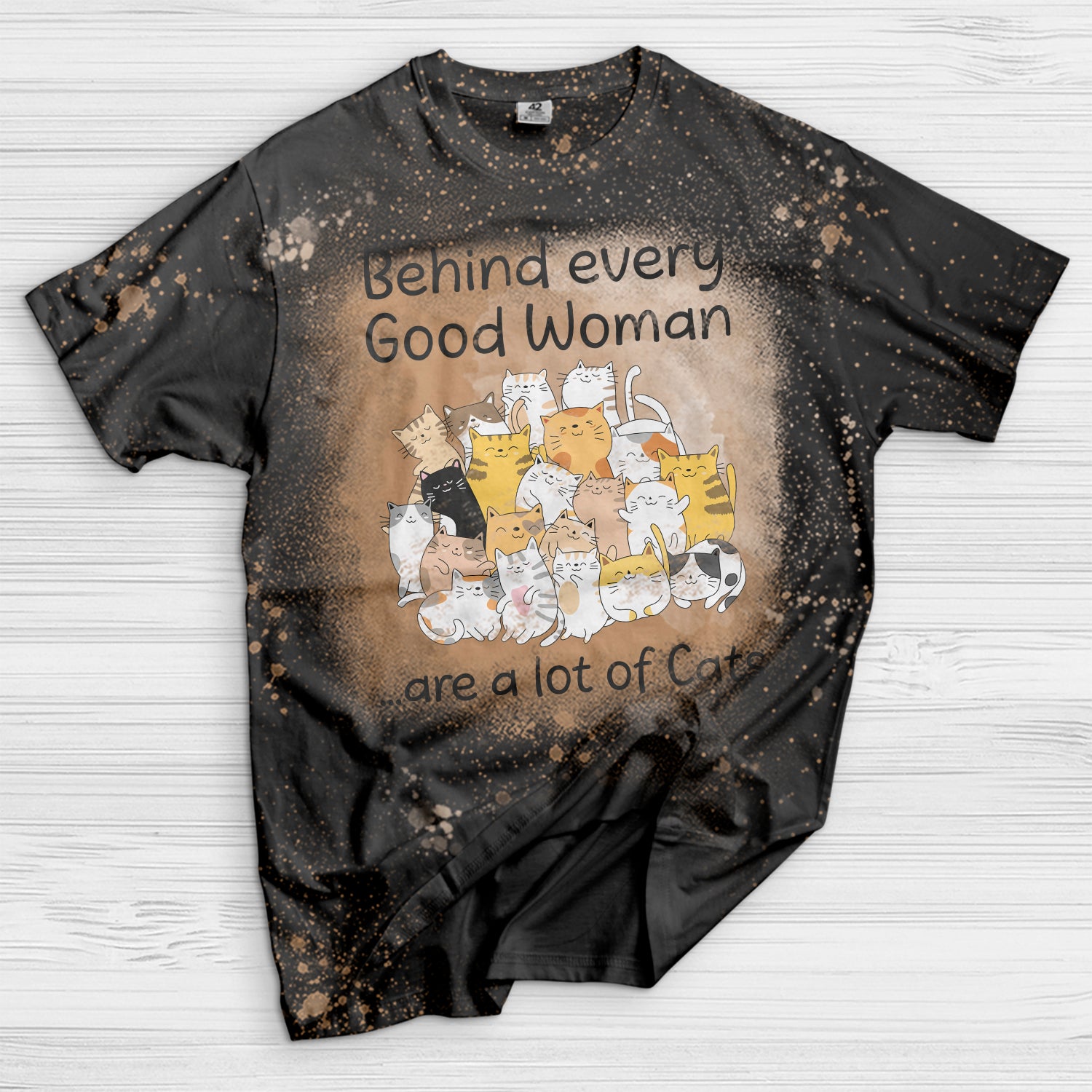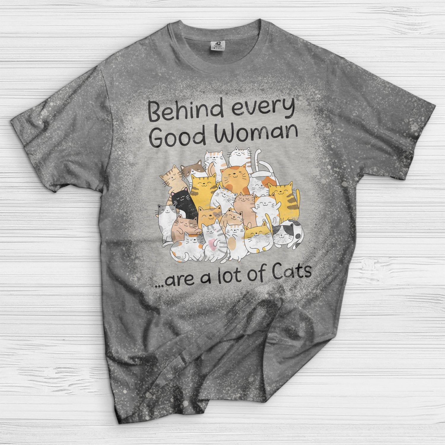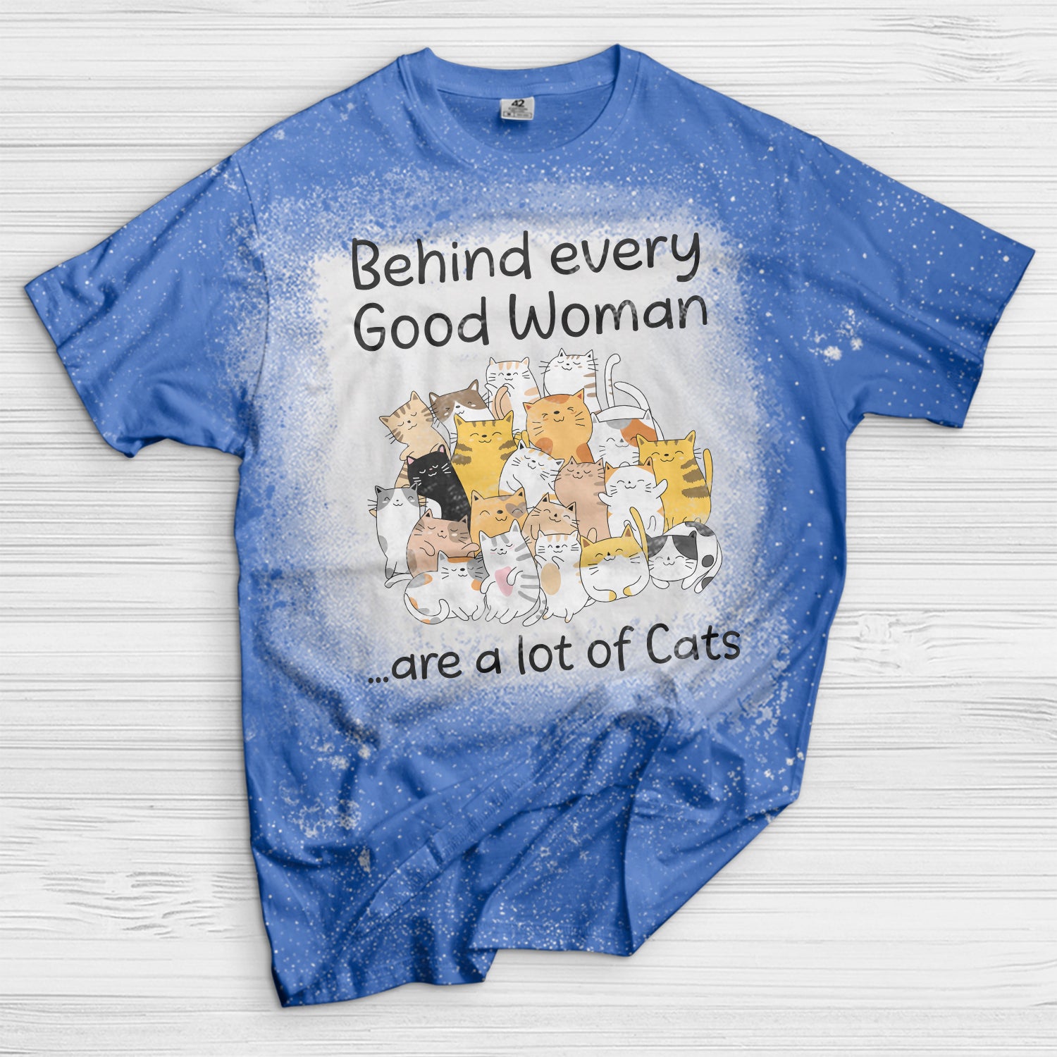 Behind every good woman are a lot of cats Bleached T-Shirt