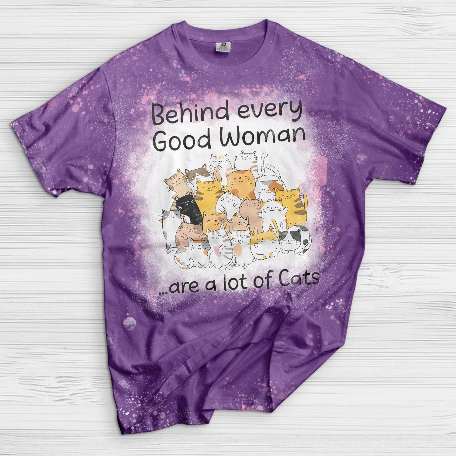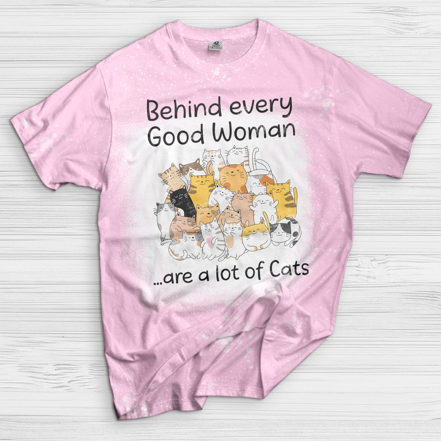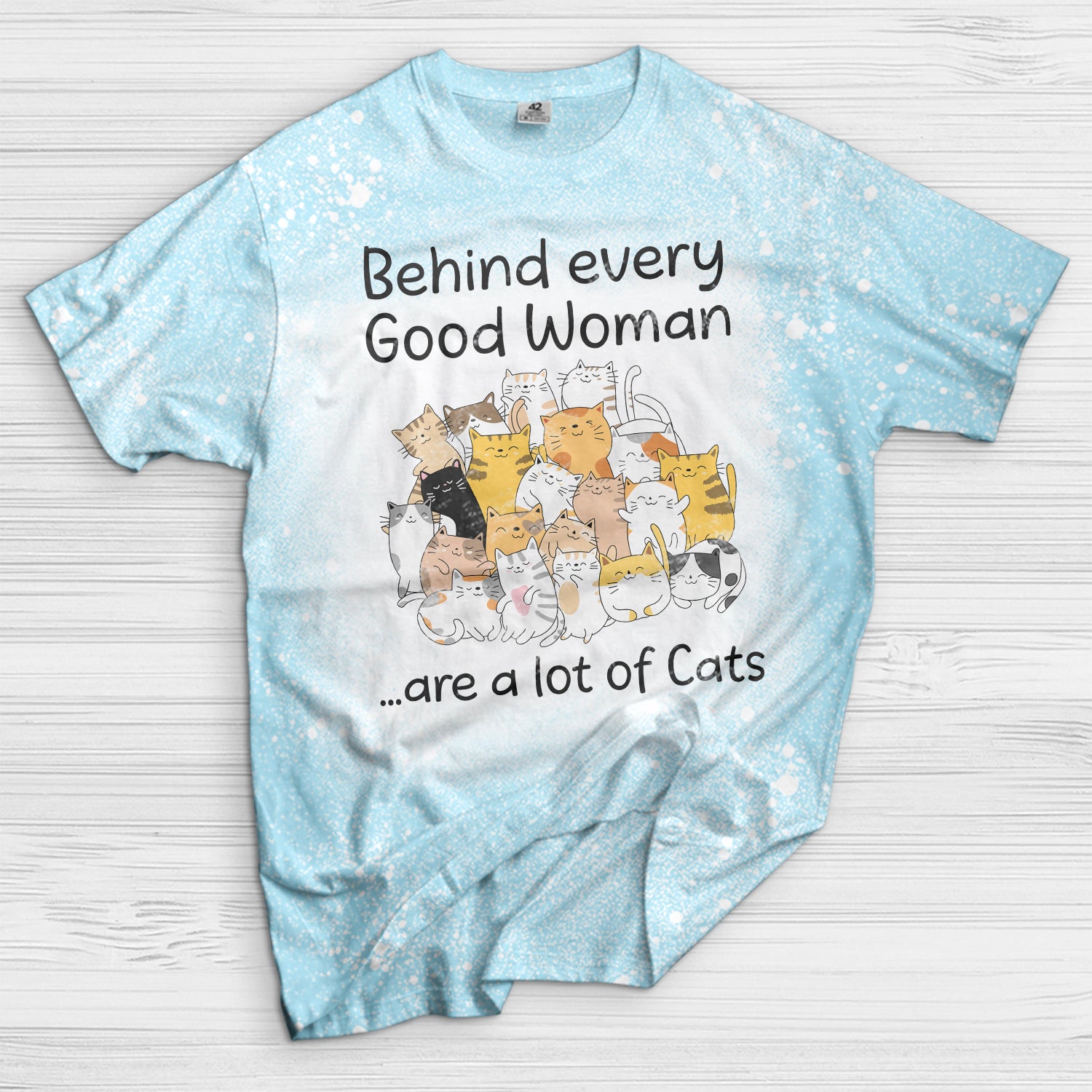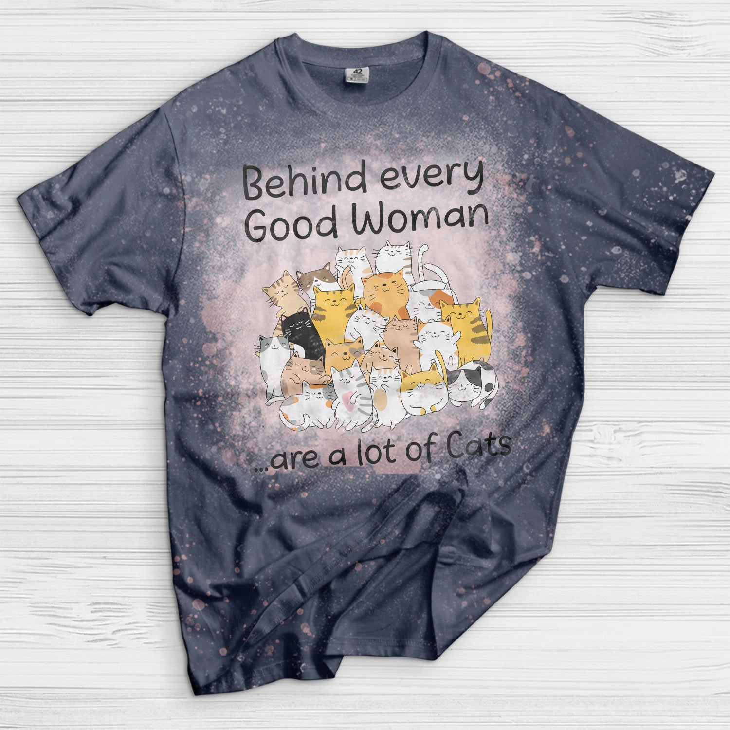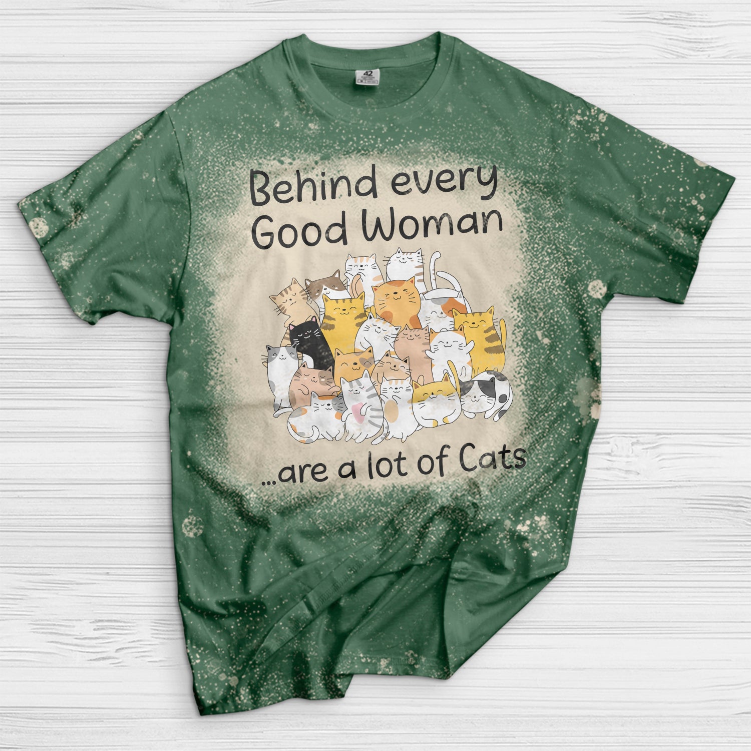 Behind every good woman are a lot of cats Bleached T-Shirt