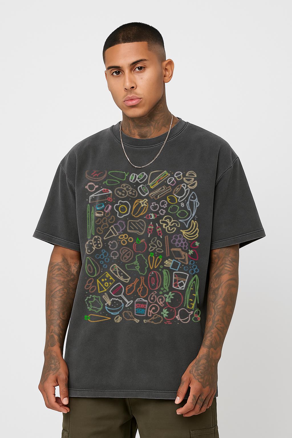 Proclaim your passion for all things culinary with this **Certified Foodie T-shirt**, featuring a fun pattern design for every food lover. Whether you’re a chef, a home cook, or just someone who loves to eat, this 100% cotton tee in a black acidwash finish is your perfect kitchen companion. It’s an ideal piece of apparel for dining out, baking at home, or simply celebrating your love for food.