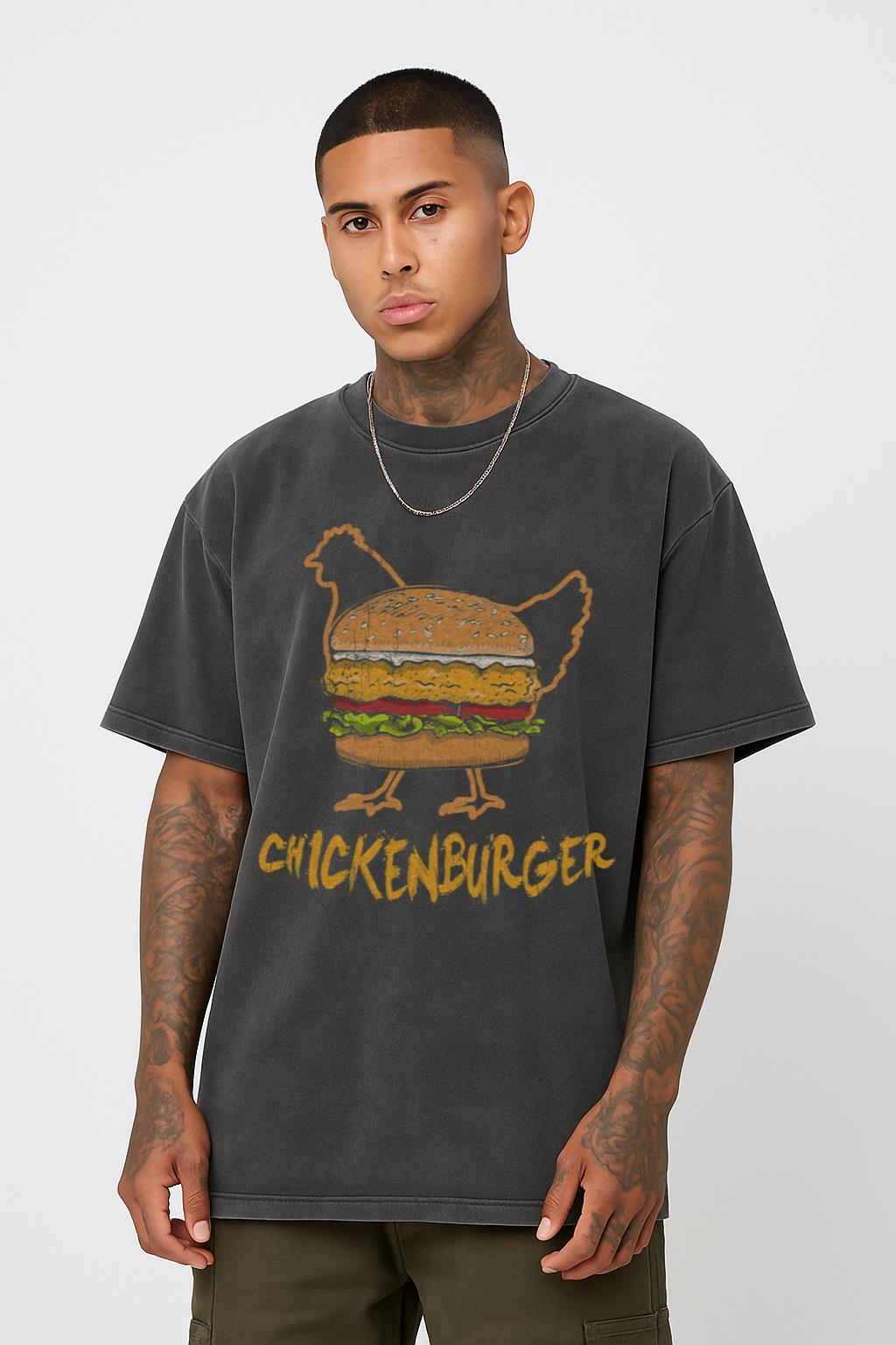 Satisfy your hunger for unique apparel with this **Chicken Burger Fast Food T-shirt**, perfect for any BBQ enthusiast or burger lover. Featuring a mouth-watering graphic, this 100% cotton tee in a black acidwash finish is ideal for grill masters, snack aficionados, and anyone who appreciates delicious food. Wear it to your next cookout or simply for a casual day out.