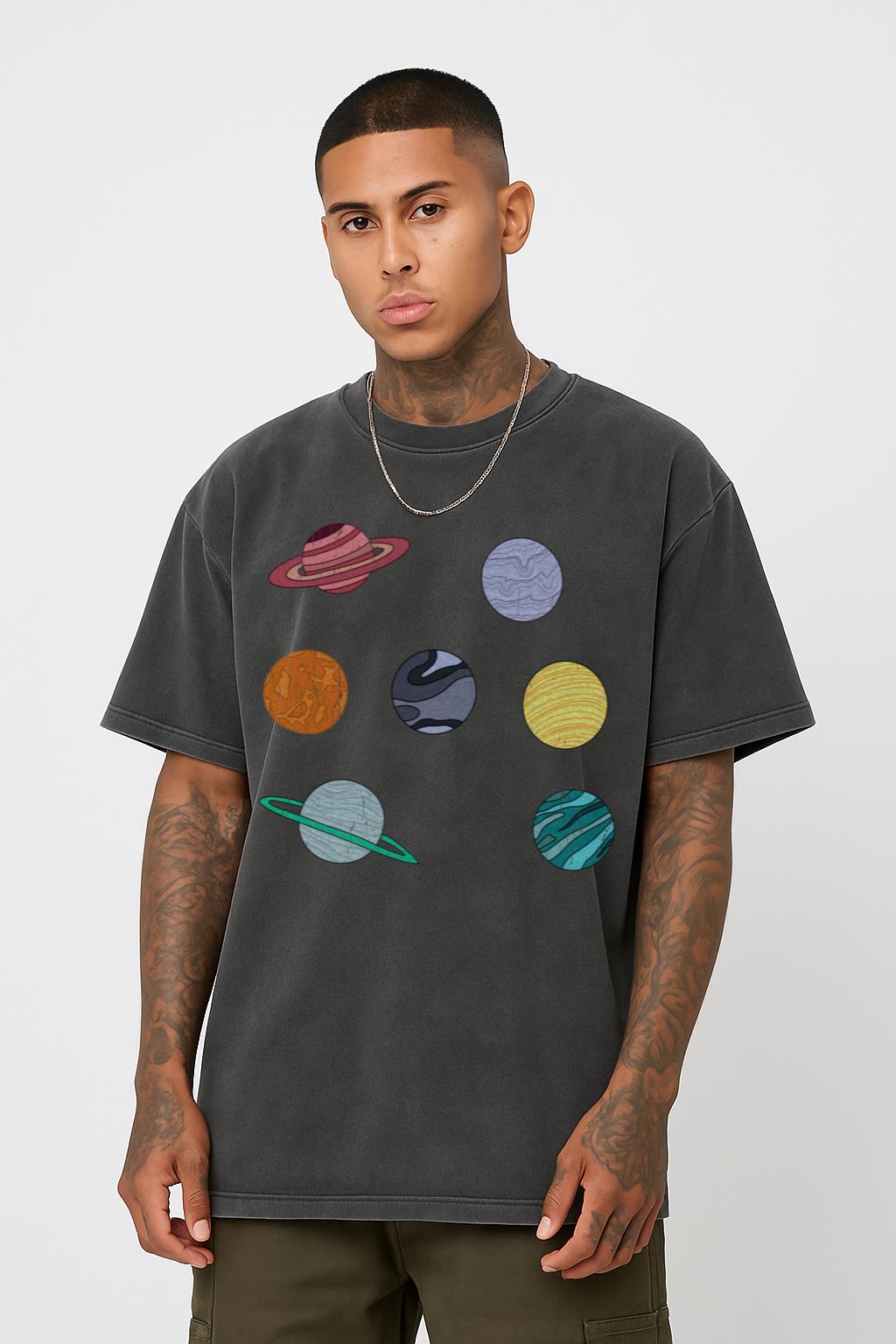 Explore the wonders of the solar system with this adorable Cute Planets T-Shirt, featuring a charming pack of celestial bodies. This aesthetic graphic tee captures the magic of space with its playful depiction of planets and possibly an astronaut. Made from 100% heavyweight cotton with a cool black acidwash finish, it offers both comfort and cosmic style for astronomy enthusiasts and dreamers alike.