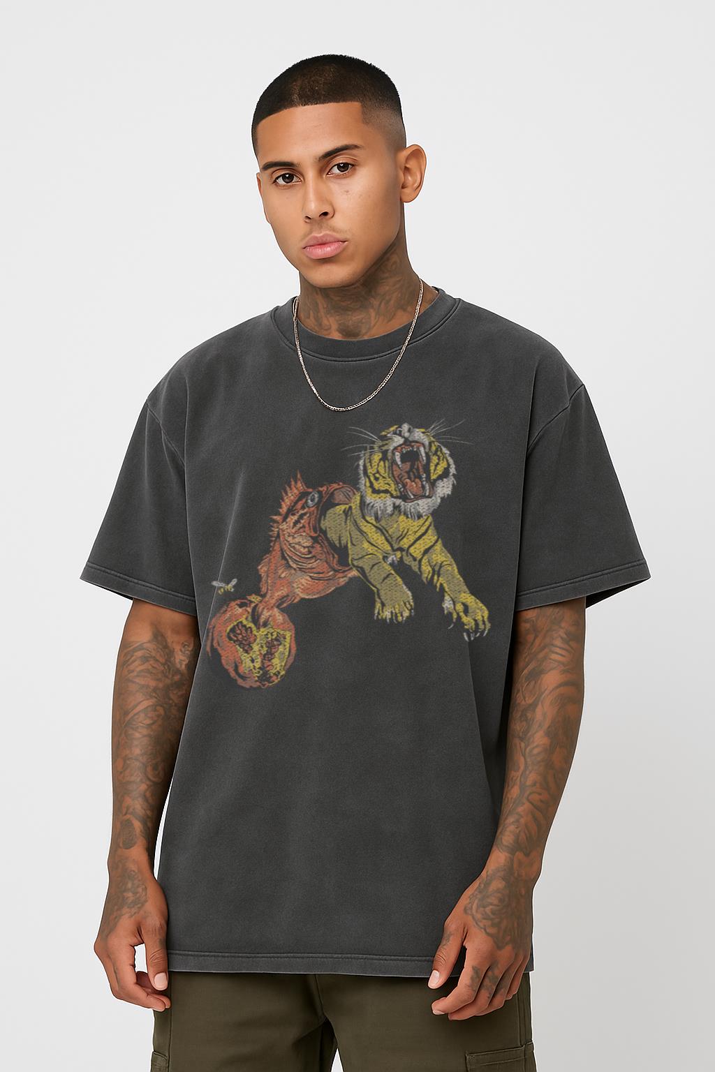 Step into the fantastical world of surrealism with this captivating Dalí’s Dream T-Shirt, inspired by the iconic works of Salvador Dalí. This graphic tee features a unique artistic rendition reminiscent of his famous painting ‘Dream Caused by the Flight of a Bee Around a Pomegranate a Second Before Awakening.’ Crafted from 100% heavyweight cotton with a striking black acidwash finish, it offers both comfort and a profound artistic statement for art lovers.
