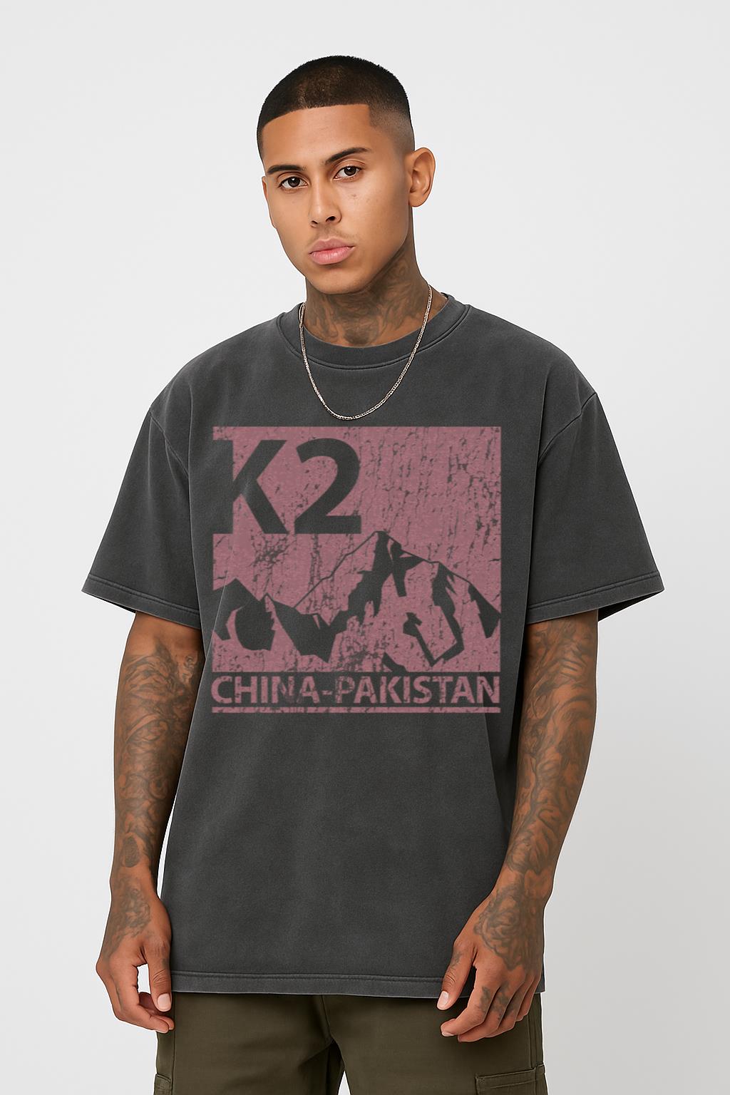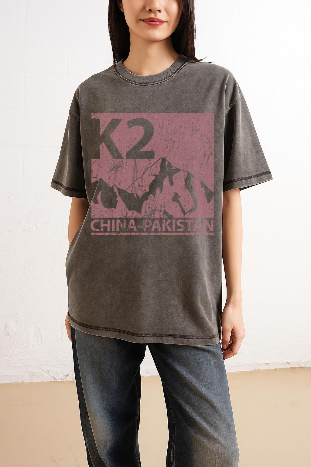 Conquer your style peaks with this **vintage K2 mountain climbing T-shirt**. Featuring an emblem inspired by the legendary K2 peak in Asia, this 100% cotton acidwash tee is perfect for mountaineers, hikers, and anyone with a passion for high-altitude adventures and the great outdoors. Its regular fit and dropped shoulders offer comfort for your next expedition or casual wear.