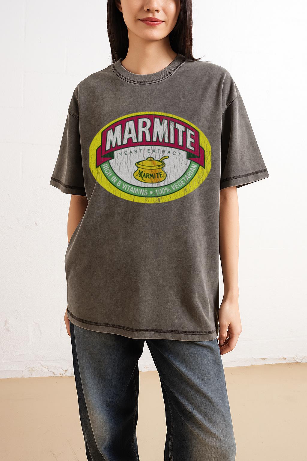 Declare your allegiance to the iconic British spread with this **Marmite Logo T-shirt**! Perfect for fans of the unique yeast extract, this tee celebrates one of the UK’s most beloved (and debated) foods. Crafted from soft 100% cotton with a distinctive black acidwash finish, it’s a comfortable and stylish way to represent your favorite vegetarian spread.