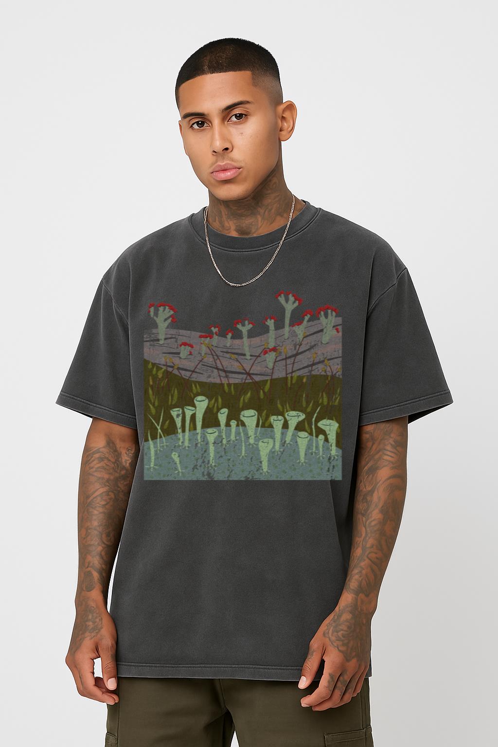 Connect with the serene beauty of the natural world with this **Moss with Lichens T-Shirt**. This **100% cotton acidwash tee** features a detailed graphic showcasing the intricate textures of moss and lichens, bringing a piece of the wilderness to your everyday style. It’s an ideal graphic tee for nature lovers, hikers, and anyone who appreciates the subtle wonders of the forest floor.