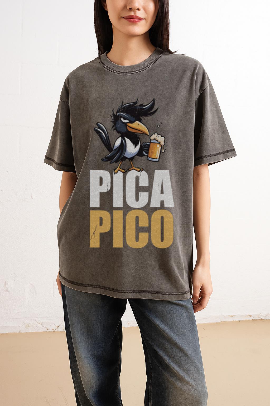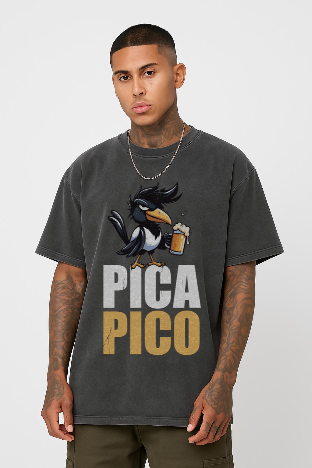 Show your appreciation for artisanal brews with this **PICA PICO Brewery T-shirt**, a unique design celebrating craft beer culture. Featuring an inspired graphic that includes a magpie, this tee is made from **100% cotton** with a distinctive **black acidwash** finish, offering a regular fit and dropped shoulders for a comfortable, stylish look perfect for any beer enthusiast or microbrewery fan.