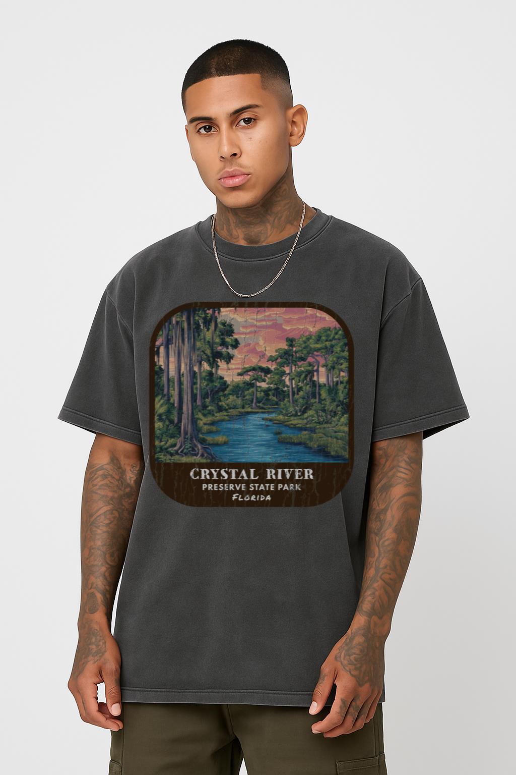 - Scenic Vintage Design: Features a retro-inspired graphic of **Crystal River Preserve State Park**, a tribute to Florida’s stunning landscapes, wildlife, and natural beauty.